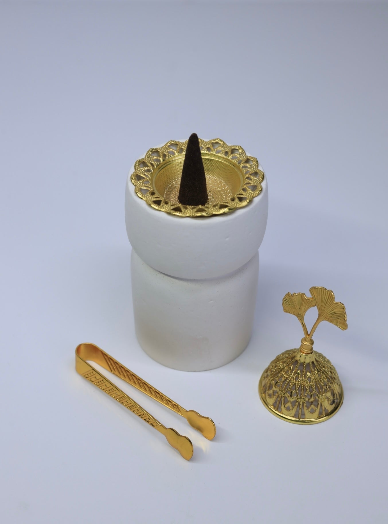 مبخره مع طبق ملوكي جولد بغطاء + ماشه جولد